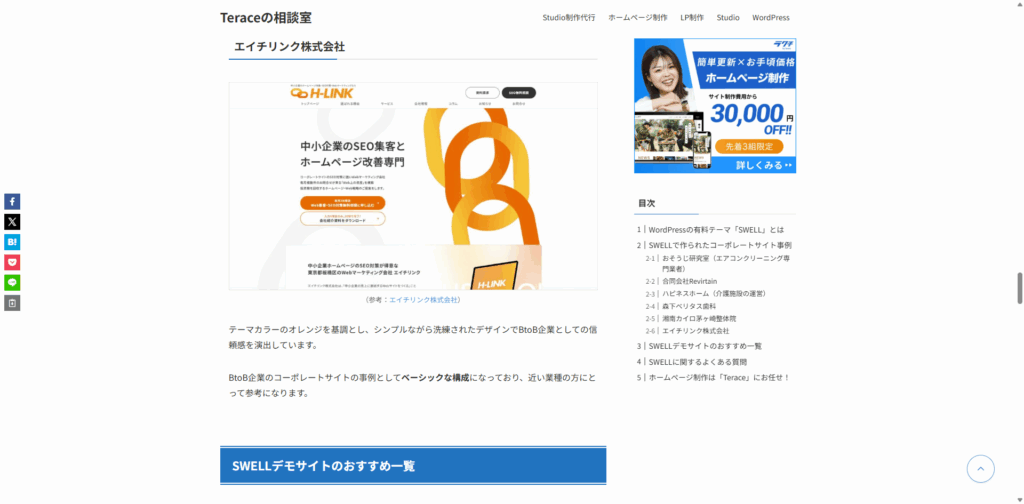 Terace様の記事にてSWELLで作られたコーポレートサイト事例として紹介されました