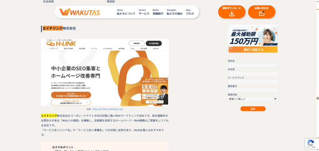 株式会社ワクタス様のブログにて「東京都でおすすめのホームページ制作会社」として掲載いただきました。