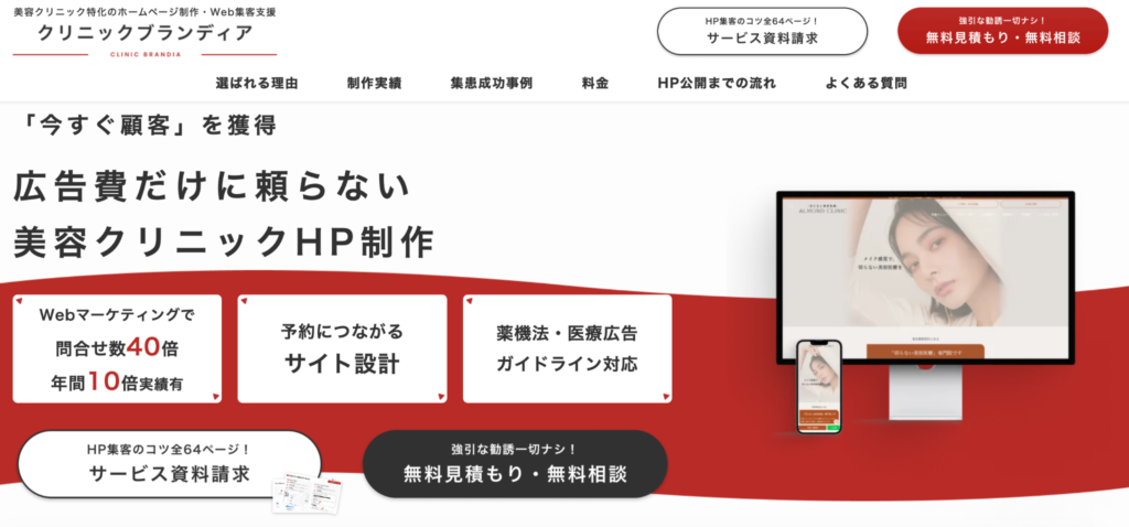 クリニックブランディアは、株式会社TENSENが運営する美容クリニック特化型のホームページ制作サービスです。