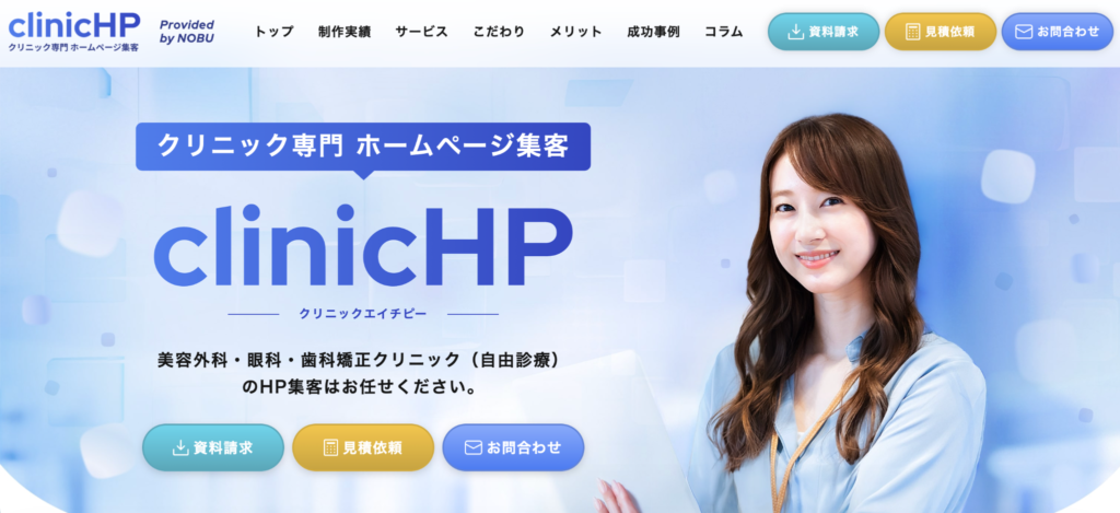 clinic HP(クリニックエイチピー)は、株式会社NOBUが運営するクリニック専門のホームページ制作・集客支援サービスです。