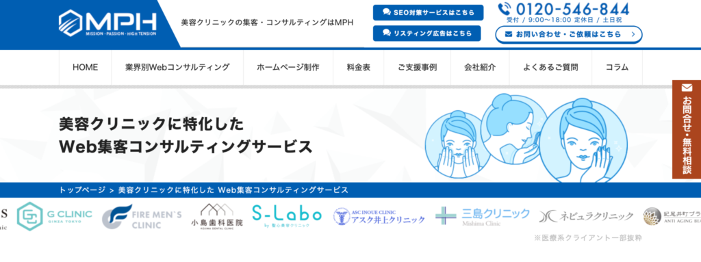 MPHは、美容クリニック業界に特化したWebコンサルティングサービスを提供しています。