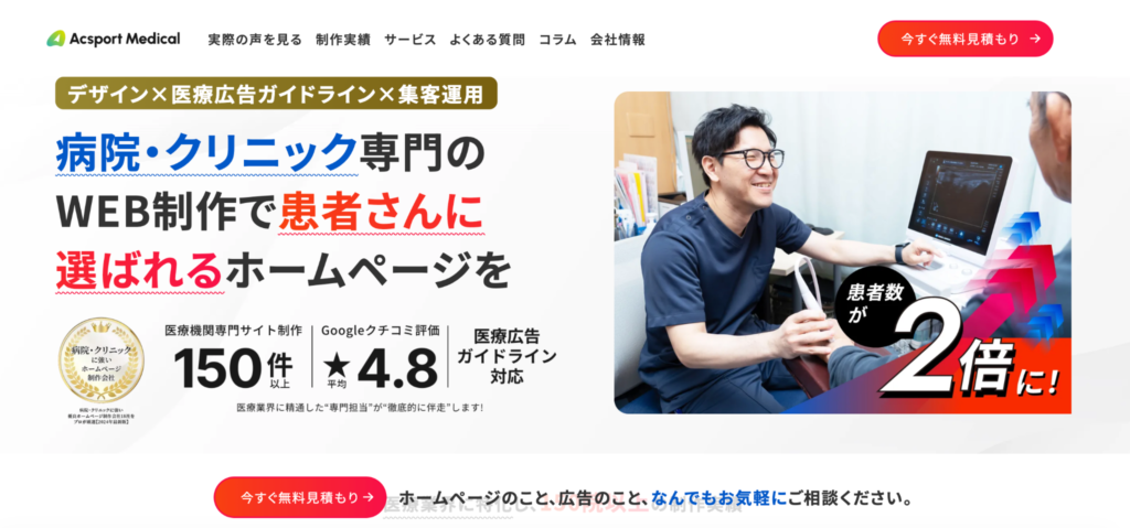 Acsport Medical(アクスポート メディカル)は、病院・クリニック専門のホームページ制作・集患支援サービスです。
