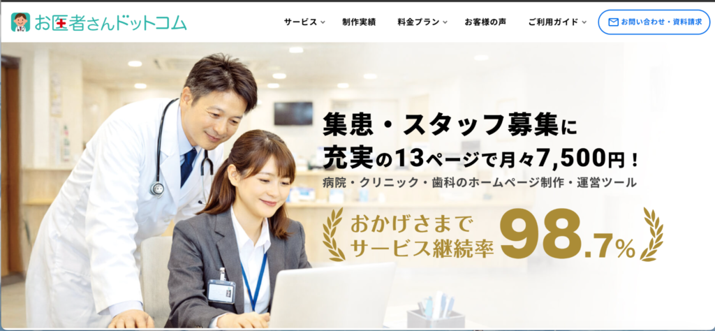 お医者さんドットコムは、病院・クリニック・歯科医院に特化したホームページ制作・運営管理サービスです。