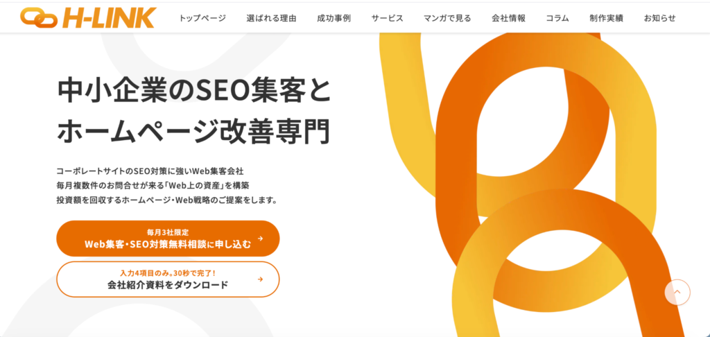 エイチリンク株式会社は、中小企業のSEO集客とホームページ改善を専門とするWebマーケティング会社です。