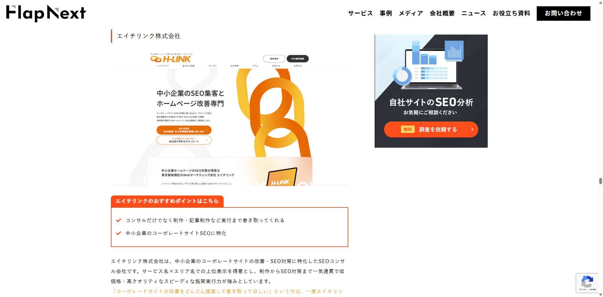 株式会社フラップネクスト様のメディアにておすすめのSEOコンサル会社として紹介されました。